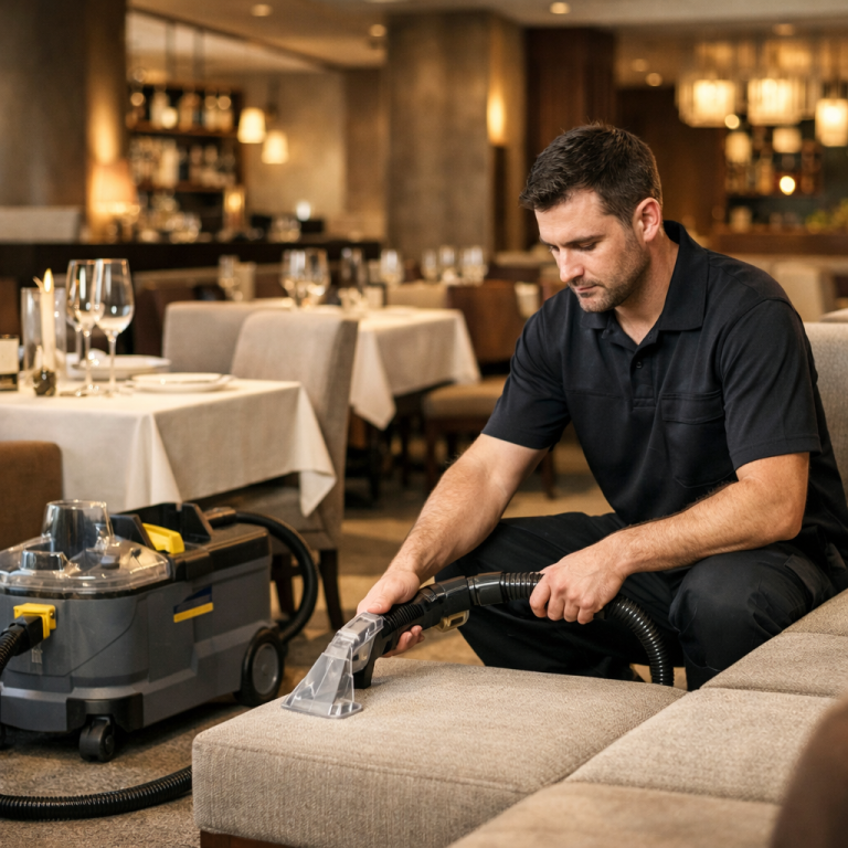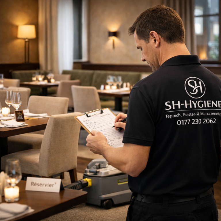 In Restaurants, Cafés und Gaststätten muss eine Reinigungslösung nicht nur fachlich funktionieren, sondern auch organisatorisch in den Betrieb passen. Unsere Einsätze werden deshalb so geplant, dass sie sich an Öffnungszeiten, Servicezeiten, Vorbereitung, ruhigeren Nutzungsphasen und der tatsächlichen Belastung einzelner Gästebereiche orientieren. So entsteht eine strukturierte und diskrete Durchführung, die den Betriebsablauf möglichst wenig stört und textile Flächen dort bearbeitet, wo es im Alltag sinnvoll und praktikabel ist.